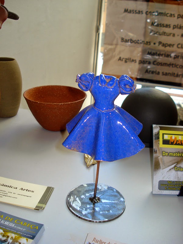 Aurora se especializou em fazer sapatos de cerâmica. Luciano é escultor, mas fez vestidos em cerâmica. nesta demonstração prática, colocamos os dois lado a lado para uma pequena demonstração de como funcionaria um “atelier de costura cerâmico”.