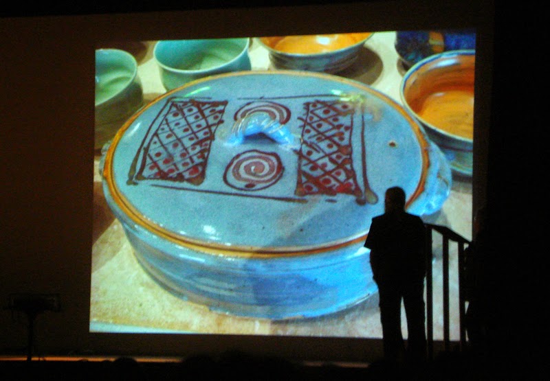 Demonstração de torno, René Le Denmat exibiu a sua técnica com incisões e deformações, mostrando diferentes maneiras de se criar obras a partir de uma peça feita no torno.