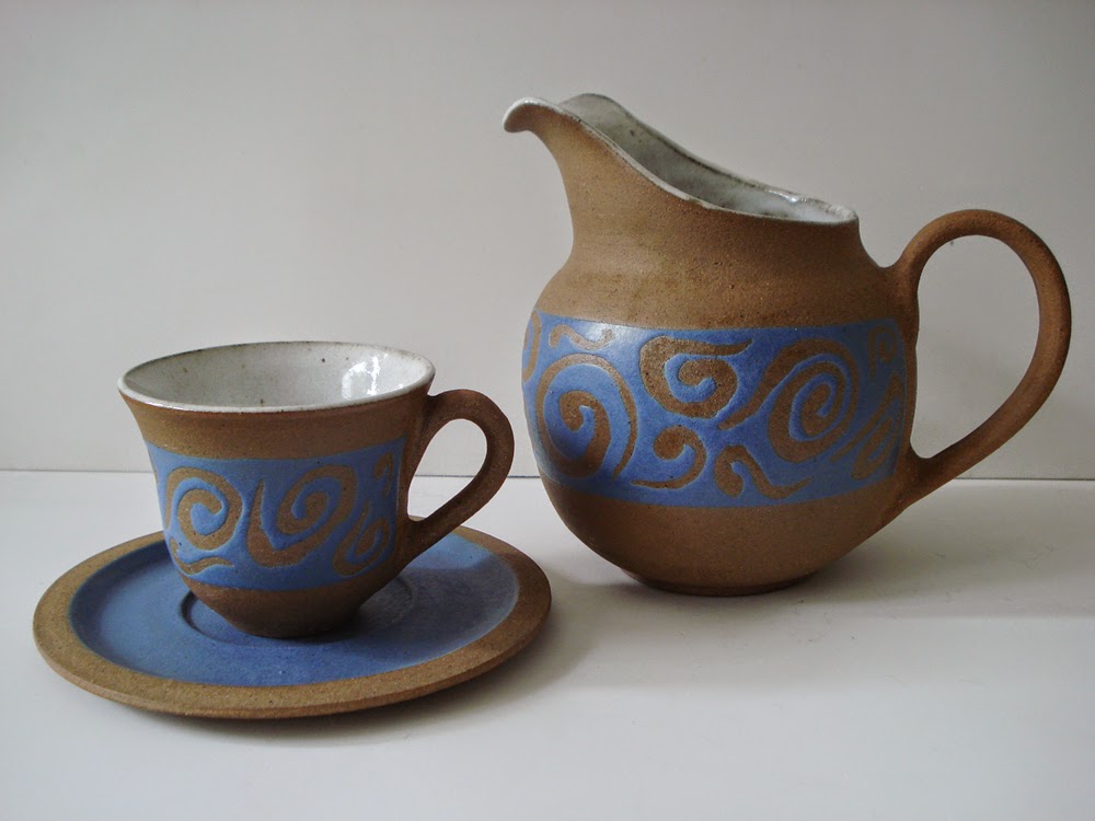leiteira e xícara espiral azul