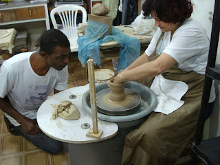 Há muito tempo desejava experimentar realizar uma peça no torno. Aproveitei o fim das férias e comecei a aprender com o Orlando Oliveira, que também é nosso oleiro.