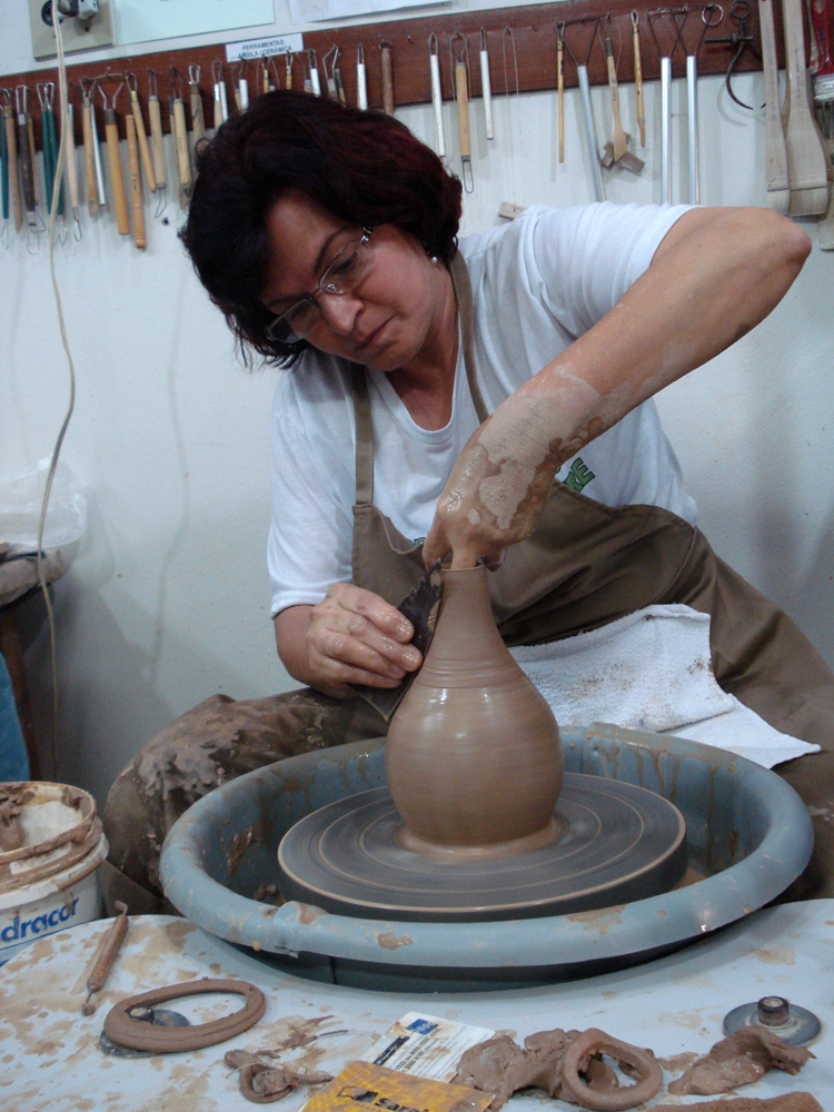 Conhecia a cerâmica pelo lado burocrático, pela pintura das peças mas modelar é especial. Eu tenho certeza que após me aposentar como professora essa é uma atividade que quero desenvolver.