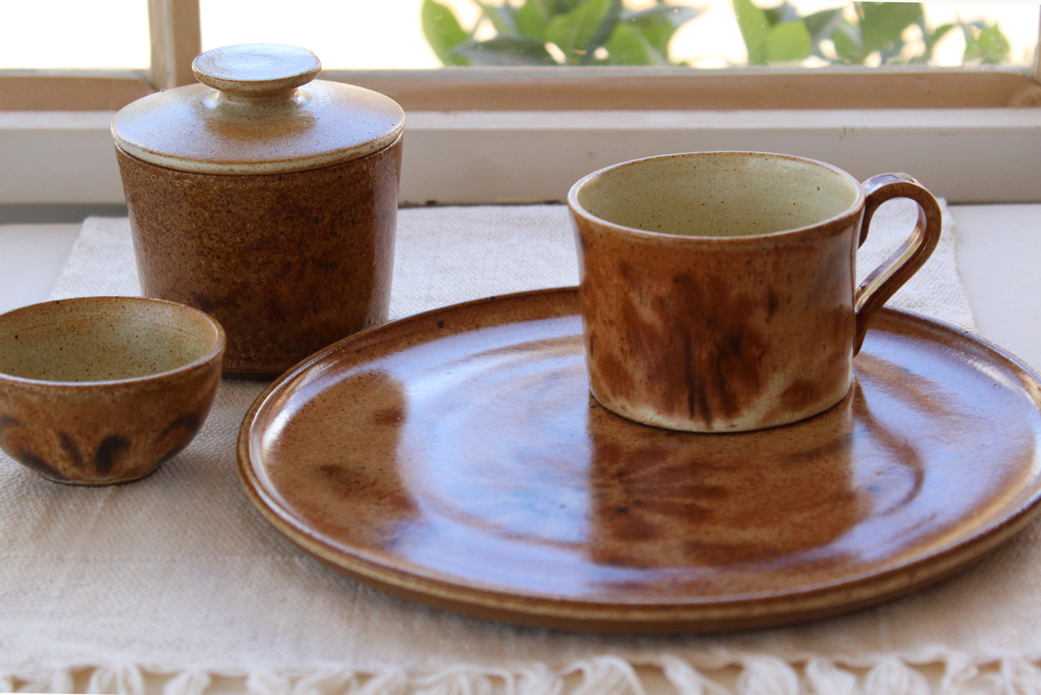 petisqueira para servir um lanchinho com a xícara e um pote para molho ou uma manteiga da roça gostosa.