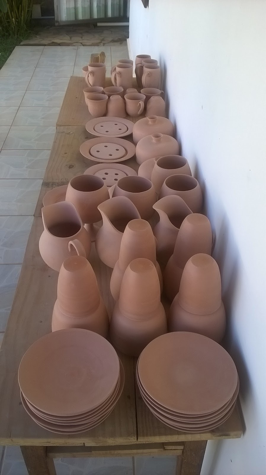 Nossa nova remessa começou a ser produzida em março, fizemos três queimas em baixa para obtermos as peças em biscoito.