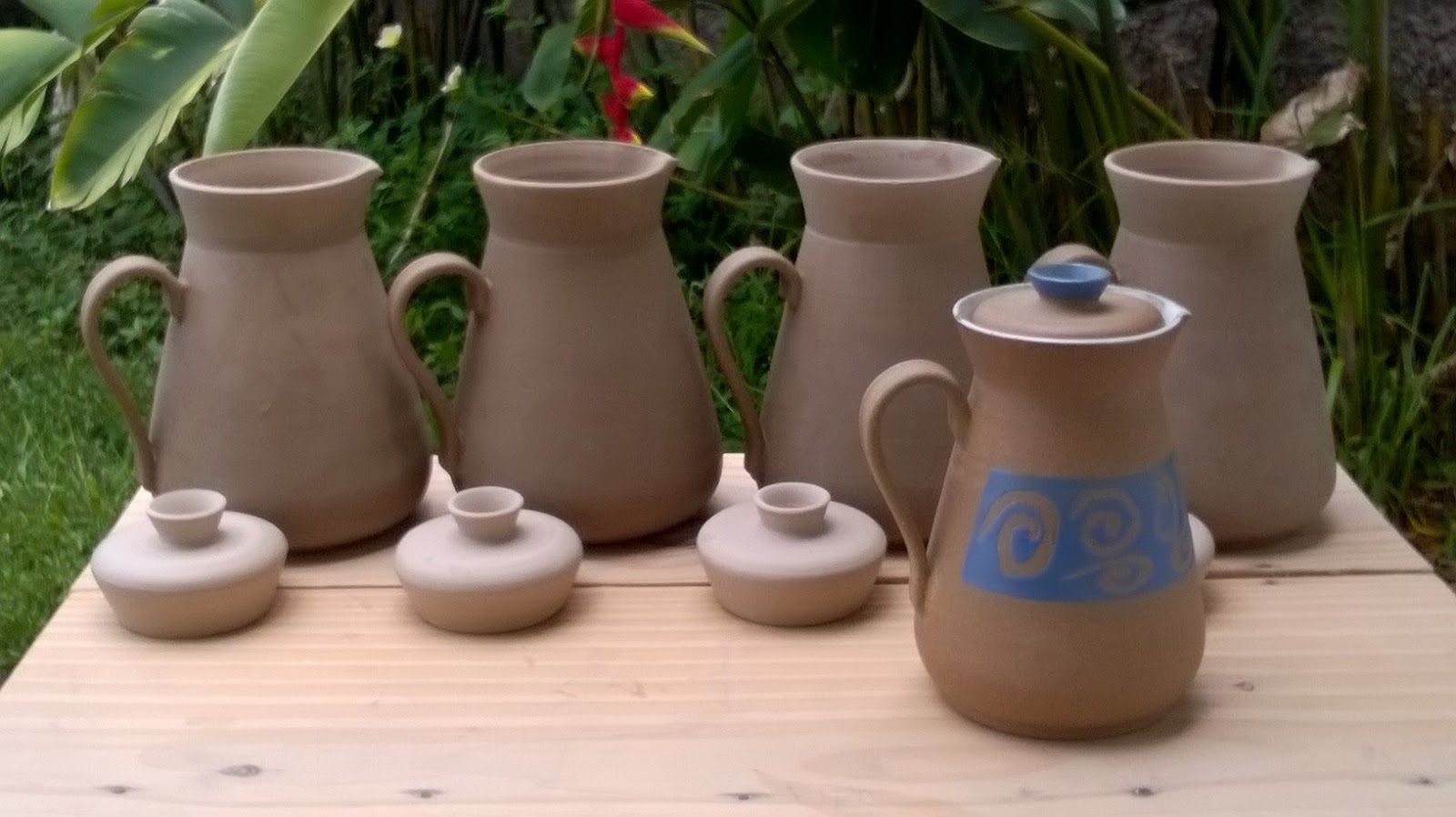 Vimos a necessidade de confeccionar uma jarra com tampa para acompanhar nossos jogos com leiteira e xícaras. Após um teste inicial programamos uma nova produção e agora já estamos fotografando alguns jogos para vocês conhecerem.