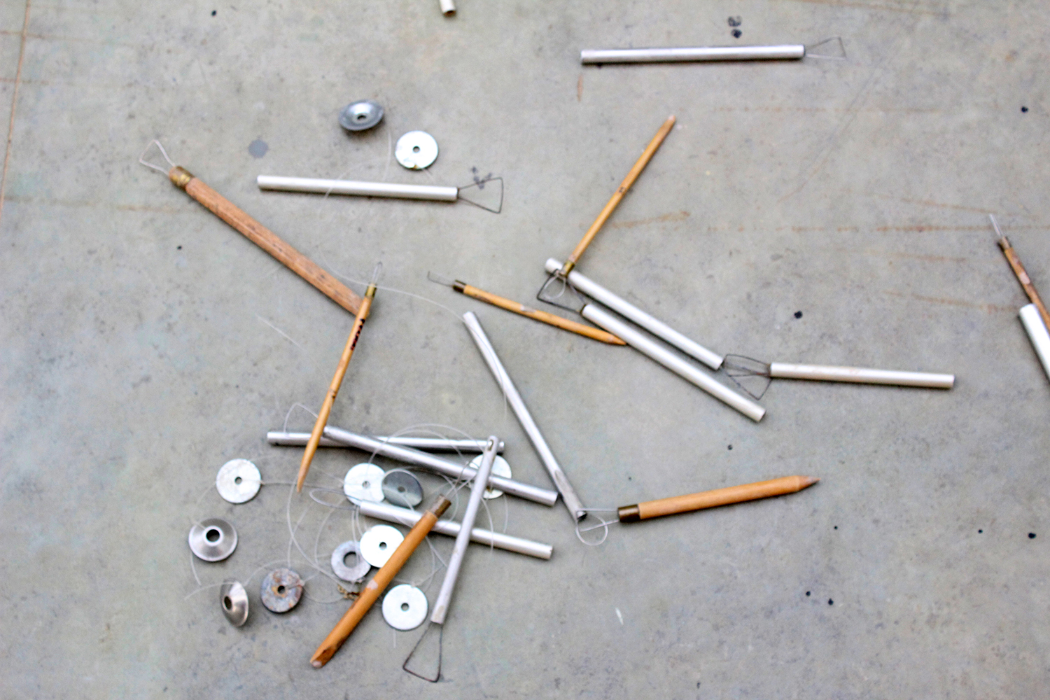 Ao final as estecas (ferramentas de modelagem feitas pelo Maurilio), secando ao sol.