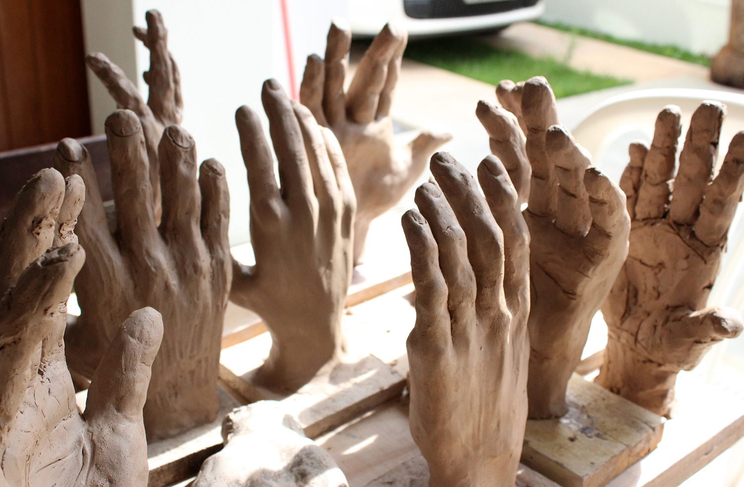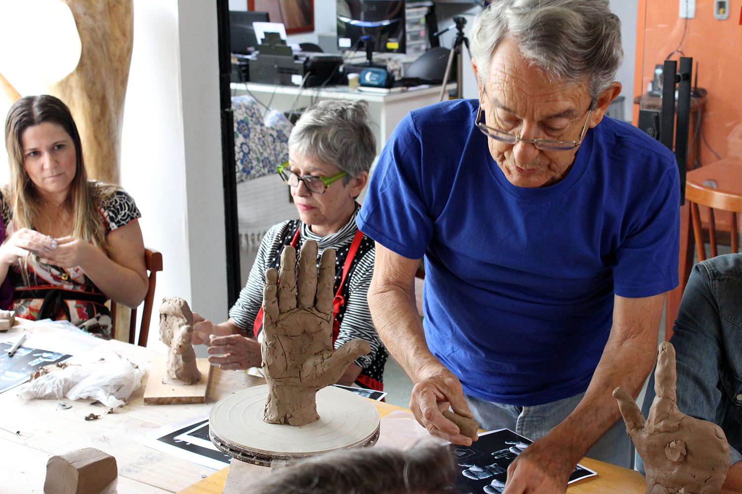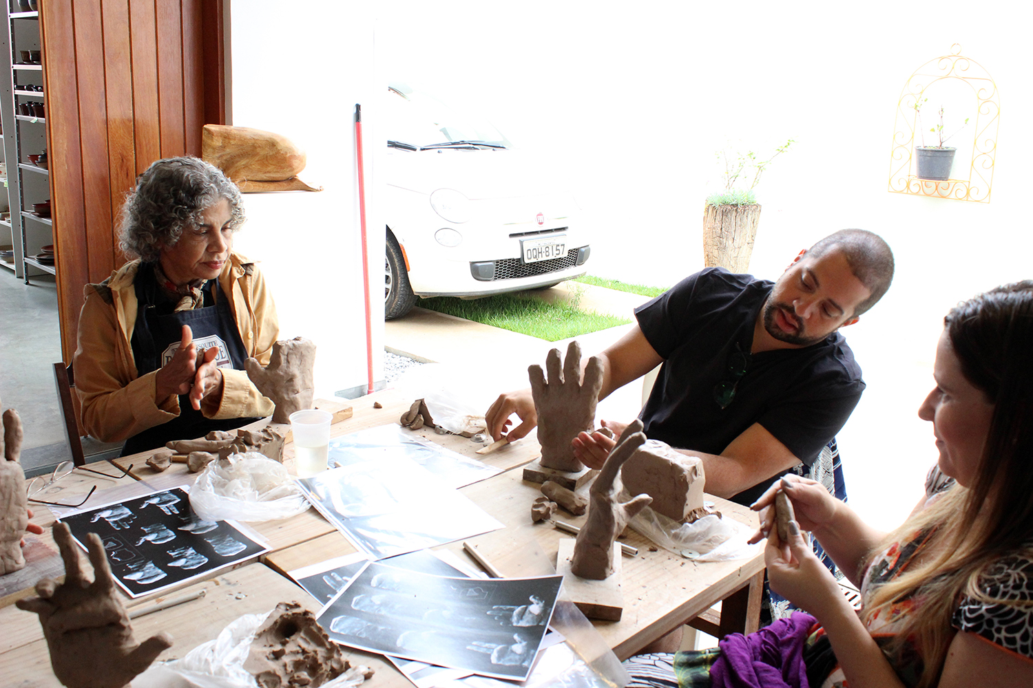Começamos o dia com a oficina do Maurilio de Modelagem de figura humana – a mão. De 9h às 13h a turma desenvolveu o exercício de modelagem.