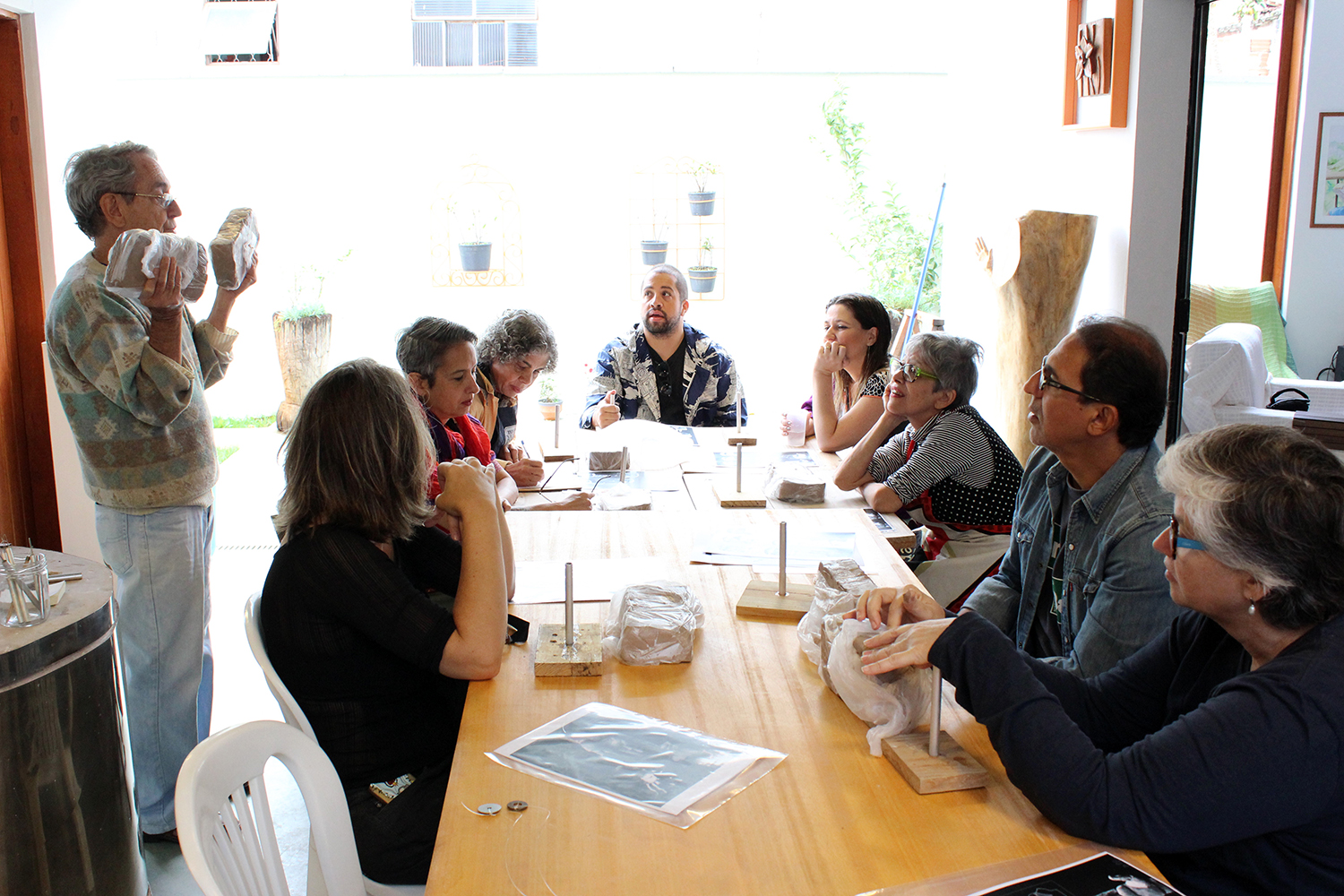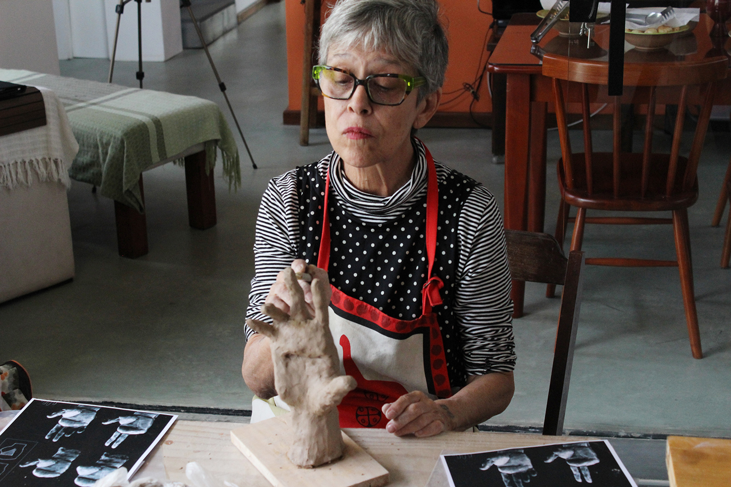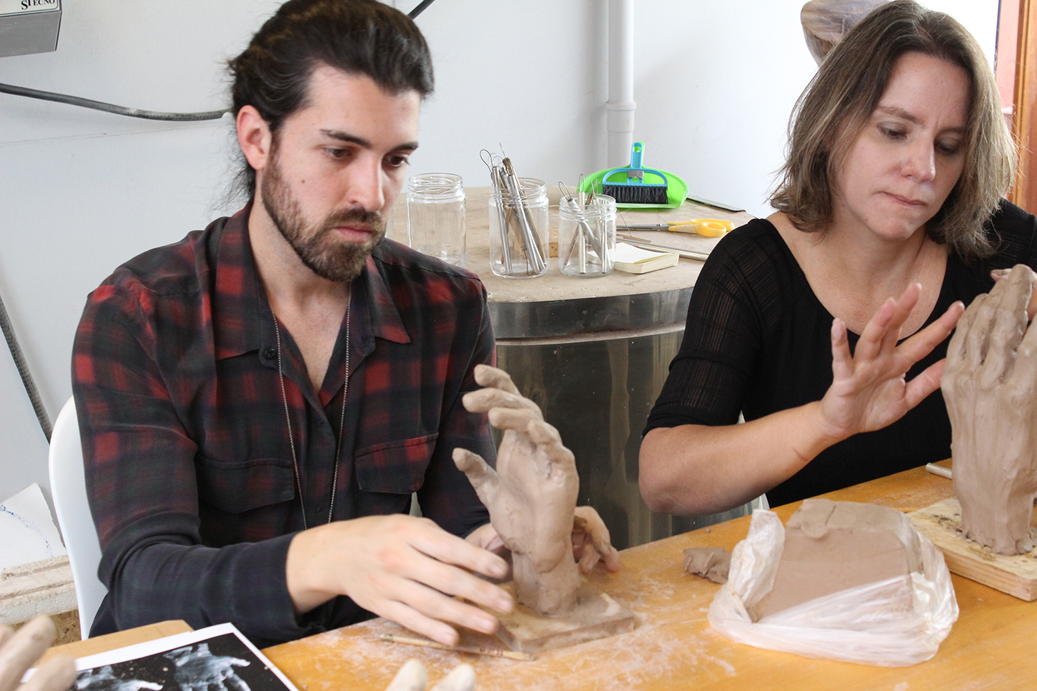 Começamos o dia com a oficina do Maurilio de Modelagem de figura humana – a mão. De 9h às 13h a turma desenvolveu o exercício de modelagem.