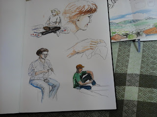 No domingo de manhã participei do agulhaço que reuniu várias pessoas fazendo tricot, crochê e bordados variados. Como eu não tenho essas habilidades fiz o meu registro desenhando com nanquim e aquarela. Foi ótimo! Mais uma oportunidade de valorizarmos a arte e o artesanato local.