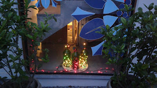 Reciclar, Reusar… Algumas garrafas reaproveitadas ganharam cor com o pisca pisca dentro delas, fica muito alegre e sustentável, né?