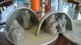 Demorou um pouco para eu terminar uma modelagem muito simbólica e importante pra mim. Há mais de dois anos eu tinha feito um esboço e queria produzir um pequeno presépio em cerâmica. Na minha memória sempre relembrava do presépio que minha vó paterna tinha e da sua arvore de Natal que sempre me encantava. Acho o Natal uma época especial, momentos de reflexão de harmonização e serenidade.